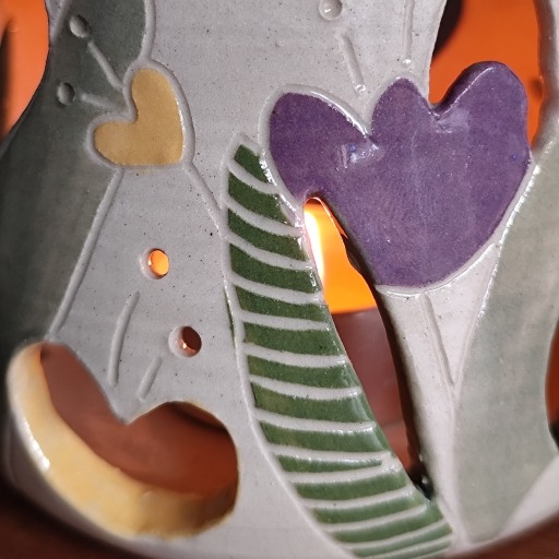 Base photophore : placez une bougie chauffe-plat à l’intérieur pour voir la lumière danser à travers les formes sculptées et sublimer les couleurs de cette céramique.